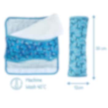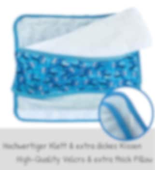 Gør bilturen mere behagelig for dit barn med Heckbo Sharks, en blød selebeskytter med pude, som giver komfort og støtte til både hoved og nakke. Den bløde plys gør det ekstra hyggeligt at læne hovedet imod under en lur, og puden sættes nemt fast rundt om bilselen med velcro på bagsiden. Både puden og det aftagelige betræk kan vaskes i maskinen, så de altid er friske og klar til brug. En praktisk og komfortabel rejseledsager på både korte og lange ture.