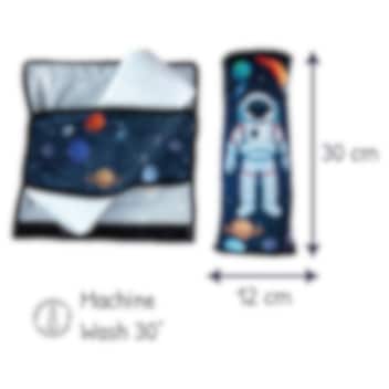 Gør bilturen mere behagelig for dit barn med Heckbo Space, en blød selebeskytter med pude, som giver komfort og støtte til både hoved og nakke. Den bløde plys gør det ekstra hyggeligt at læne hovedet imod under en lur, og puden sættes nemt fast rundt om bilselen med velcro på bagsiden. Både puden og det aftagelige betræk kan vaskes i maskinen, så de altid er friske og klar til brug. En praktisk og komfortabel rejseledsager på både korte og lange ture.