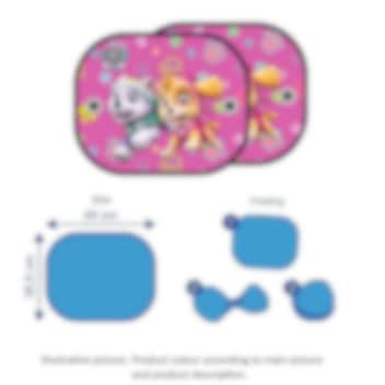 Paw Patrol Pink er et sæt med to praktiske og flotte solskærme til bilens sideruder, med det populære motiv fra Super Valperne. Solskærmene fastgøres nemt med sugekopper og kan hurtigt sættes op og tages ned, så børnene altid er beskyttet mod solen. Når skærmene ikke bruges, kan de foldes sammen til kompakt størrelse og opbevares let i bilens sædelomme eller handskerum.