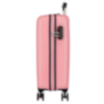 Minnie Mouse Sounds Of Nature er en sød og holdbar kuffert til børn, der også fungerer perfekt som kabinetaske. Kufferten har 4 lydløse hjul, der drejer 360 grader, hvilket gør tasken nem at manøvrere fx i lufthavne. Det solide 34-liters bagagerum rummer alt, hvad du skal bruge på turen. Kuffertens pakkerum er foret og opdelt i to rum, et rum der lukkes med lynlås og et rum med elastiske stropper. Alt for at holde din taske organiseret. Minnie Mouse Sounds Of Nature er lavet af slidstærkt ABS plastik og har et stabilt teleskophåndtag, bærehåndtag og kodelås. Kufferten kan også bruges som håndbagage da størrelsen (55 x 38 x 20 cm) passer indenfor IATAs regler for håndbagage (tjek dog hvad der gælder for dit flyselskab).