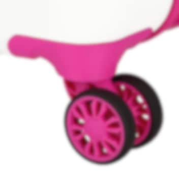 Minnie Mouse Sunny Day er en sød og holdbar kuffert til børn, der også fungerer perfekt som kabinetaske. Kufferten har 4 lydløse hjul, der drejer 360 grader, hvilket gør tasken nem at manøvrere fx i lufthavne. Det solide 34-liters bagagerum rummer alt, hvad du skal bruge på turen. Kuffertens pakkerum er foret og opdelt i to rum, et rum der lukkes med lynlås og et rum med elastiske stropper. Alt for at holde din taske organiseret. Minnie Mouse Sunny Day er lavet af slidstærkt ABS plastik og har et stabilt teleskophåndtag, bærehåndtag og kodelås. Kufferten kan også bruges som håndbagage da størrelsen (55 x 38 x 20 cm) passer indenfor IATAs regler for håndbagage (tjek dog hvad der gælder for dit flyselskab).