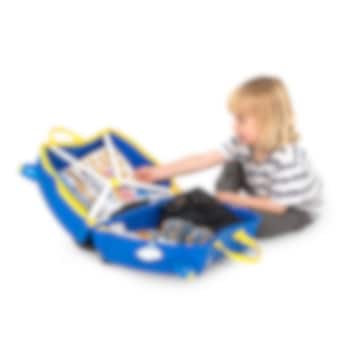 Trunki Percy Police er en praktisk og prisvindende kuffert til børn. Kufferten har hjul og trækrem og kan også bruges til at køre på! I en Trunki børnekuffert er der god plads til alle børns ting, mens tasken fungerer som transportmiddel, når børnenes ben er blevet trætte, for eksempel i lufthavne