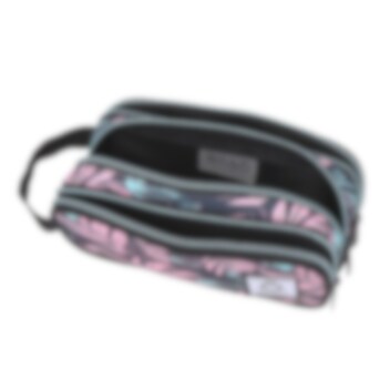 Lad barnet pakke sine toiletsager med stil med Enso Fleur Leaves, en praktisk og holdbar børnetoilettaske i moderne design. Toilettasken har tre separate rum, som alle lukkes med lynlås, hvilket gør det nemt at organisere alt fra tandbørste og tandpasta til børste og småting. Fremstillet i vandafvisende materiale beskytter toilettasken indholdet mod fugt og spild, samtidig med at den er let at rengøre. Den praktiske hængeløkke på siden gør det nemt at hænge toilettasken op hjemme, på hotel eller med på rejsen.