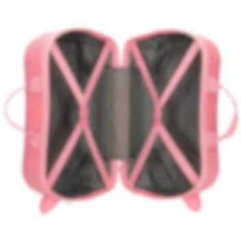 Hello Kitty Hearts & Dots er en sød børnekuffert som kan siddes på, med hårdt låg og på hjul til børn 3-6 år (op til 25 kg). Kufferten er lavet af slidstærk ABS-plast og den leveres med en stærk bære- og trækrem, der gør det let at bugsere kufferten eller bære på forældrenes skulder. Inde i kufferten er der tilstrækkelig plads til barnets tøj og legetøj. Kufferten er egnet som håndbagage på de fleste fly og barnet kan køre på den som på en legetøjsbil.