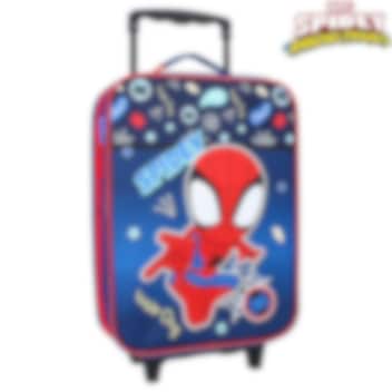 Spidey Made To Roll er en praktisk og stilfuld børnekuffert og håndbagage kuffert med teleskophåndtag og stillegående hjul. Kufferten har rigelig plads til både barnets tøj og legetøj. Indvendigt kan tøjet spændes fast med to fleksible stropper, så det bliver liggende på plads under rejsen. Kufferten er bygget på en stærk ramme, og overfladen er lavet af slidstærkt polyesterstof. To støtteben sikrer, at kufferten står stabilt, når den ikke trækkes. Den lette konstruktion og stillegående hjul gør kufferten nem at manøvrere, og den passer som håndbagage til bagagehylden hos de fleste flyselskaber.