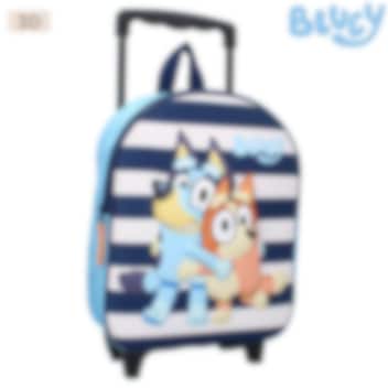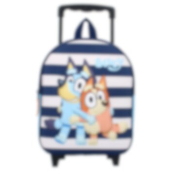 Bluey Oh Happy Days er en sød lille kuffert og trolley rygsæk til mindre børn med et sjovt Frost motiv. Kufferten har teleskophåndtag, bærehåndtag, to hjul og støtteben foran, så tasken kan placeres lodret. Skjult på bagsiden af kufferten er desuden polstrede og justerbare stropper, så tasken kan bæres som en rygsæk. Kuffertens hovedrum rummer legetøj, bamser, snacks og andre ting, der skal med på turen. Børnekufferten Bluey Oh Happy Days passer både som håndbagage på flyet og som en lille gadgettaske til at tage med til en overnatning hos familie og venner.