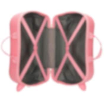 Minnie Mouse Happy To Be Me, er en charmerende ride-on kuffert til børn fra 3–6 år (op til 25 kg). Denne unikke kuffert kombinerer sjovt køretøj med praktisk rejsetaske, så barnet kan sidde på og køre rundt med kufferten, samtidig med at der er plads til tøj og legetøj. Kufferten er fremstillet i slidstærk ABS-plast, hvilket sikrer holdbarhed og beskyttelse af barnets ejendele. De fire stærke hjul, hvor forhjulene kan drejes 360 grader, gør det let at manøvrere kufferten på lufthavnsgulve, stationer eller hjemme. Den medfølgende træk- og bærerem kan både bruges til at trække kufferten eller bæres over skulderen. Indersiden har elastiske pakkestropper og et bagagerum på 24,6 liter. Kufferten er designet til at opfylde de fleste flyselskabers krav til håndbagage, hvilket gør den til et ideelt valg til både korte ture og længere ferier.