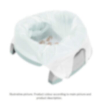 Produktet indeholder: 1 Potette Plus potte, 1 silikoneindsats, 1 transportpose og 3 engangsposer