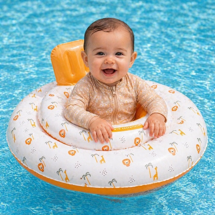 Swim Essentials Baby Float Jungle er en stabil og funktionel babybadering, perfekt til at give de mindste en tryg og sjov introduktion til vand. Med en diameter på 69 cm passer den til børn op til 11 kg (0-1 år). For ekstra sikkerhed er baderingen udstyret med fire separate luftkamre og sikkerhedsventiler, som forhindrer luftlækage, og den er sikkerhedstestet i henhold til EU-standarder. De to huller i baderingens bund giver barnet fri bevægelse af benene, samtidig med at det sidder komfortabelt og stabilt. Swim Essentials Baby Float Jungle er ideel til babys første vandoplevelser – både i poolen, på badeferie eller derhjemme – og kombinerer tryghed, komfort og leg i ét produkt.