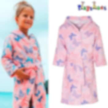 Playshoes Bathrobe Butterfly er en superblød og hyggelig badekåbe til børn, perfekt til både bade- og morgenrutiner. Den er fremstillet af Oeko-Tex Standard 100 certificeret fleece, som føles ekstra blød mod huden og samtidig tørrer hurtigt. Badekåben har en varm og praktisk hætte, der beskytter barnet mod træk efter badet, samt to rummelige lommer foran. En knap øverst holder kåben sikkert på plads, mens taljebæltet giver en god og justerbar pasform. Denne badekåbe er ideel at bruge efter bad i poolen, havet eller derhjemme – og fungerer også perfekt som en komfortabel morgenkåbe, når barnet står op.