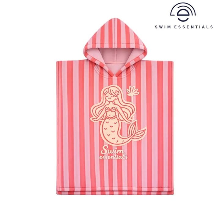 Swim Essentials Mermaid er en blød og behagelig badeponcho, der holder børn varme og tørre efter en tur i vandet. Den er fremstillet af 100% bomuld, som føles skånsomt mod huden og samtidig har en god absorberingsevne. Ponchoen er udstyret med en rummelig hætte, der giver ekstra varme og komfort, når barnet kommer op af vandet. Den er nem at tage over hovedet og sidder behageligt, hvilket gør den ideel både til stranden, poolen og derhjemme efter bad. Det stilfulde design gør badeponchoen til en favorit hos både børn og forældre, mens det bløde materiale sikrer maksimal komfort – også ved længere brug.