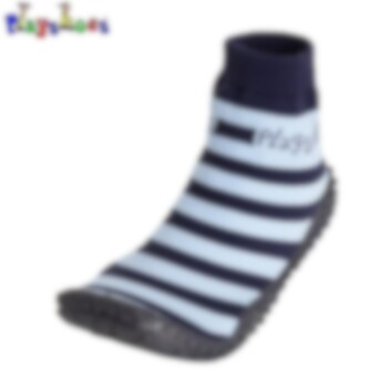 Playshoes Aquasocks Blåstribet er lette og komfortable badesokker til børn, der elsker at lege på stranden. Disse strandsokker beskytter små fødder mod varmt sand, skarpe sten og glatte overflader, samtidig med at de giver UV-beskyttelse. Fremstillet i blødt neopren med varmebestandige TPR-gummisåler, sikrer de et godt greb og gør badesokkerne skridsikre. Let at tage på og af samt hurtigtørrende – ideelle badesokker til børn på sommerens strand- og vandlege.