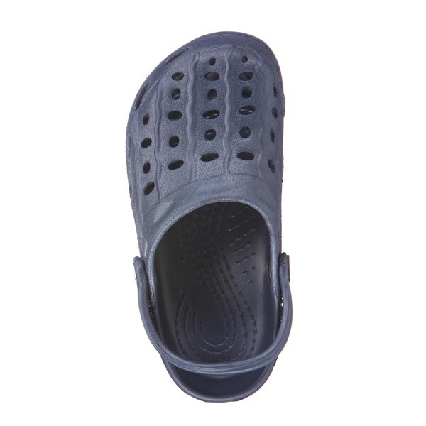 Playshoes EVA Clogs Navy er komfortable og funktionelle clogs til børn, der giver maksimal komfort til både hverdag og ferie. Disse lette clogs er perfekte til leg derhjemme, ved poolen eller på stranden og kombinerer praktisk design med høj komfort. EVA Clogs er fremstillet i blød og fleksibel EVA, som gør dem lette at have på hele dagen. Den formstøbte fodseng giver behagelig støtte til små fødder, mens den elastiske rem bagtil sikrer, at tøflerne sidder godt fast – selv under aktiv leg. Den åbne konstruktion gør dem åndbare og nemme at tage af og på, hvilket gør dem ideelle til varme sommerdage. Det lette EVA-materiale giver en fleksibel og behagelig pasform og gør badetøflerne til et oplagt valg for børn, der har brug for både komfort og bevægelsesfrihed.