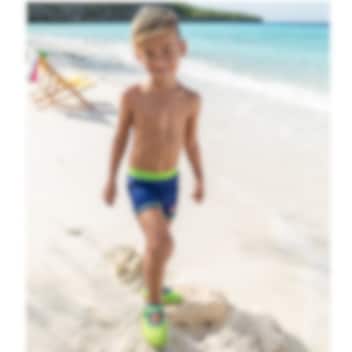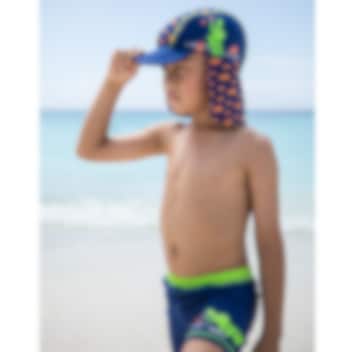 Seje og behagelige lange badebukser til børn med høj UV-beskyttelse (SPF 50+). Playshoes Crocodile er designet med elastisk linning og normal taljehøjde, så bukserne sidder perfekt under leg og svømning. Det hurtigtørrende, bløde og fleksible materiale er Oeko-Tex certificeret (Standard 100) og skånsomt mod barnets hud, hvilket gør bukserne ideelle til både pool og strand.