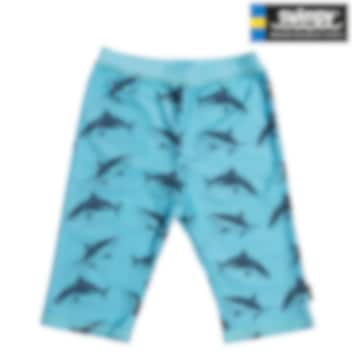 Swimpy Shark UV-badebukser er knælange og beskytter effektivt barnets ben mod solens skadelige UV-stråler. Bukserne er lavet af blødt og fleksibelt Oeko-Tex-certificeret materiale med SPF 50+, som sikrer optimal solbeskyttelse. Badebukserne er nemme at tage på og af og behagelige – også når de er våde. Materialet tørrer hurtigt og gør bukserne perfekte til svømning og leg på stranden – både på ferie og hjemme.