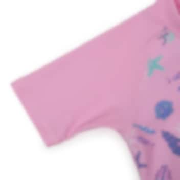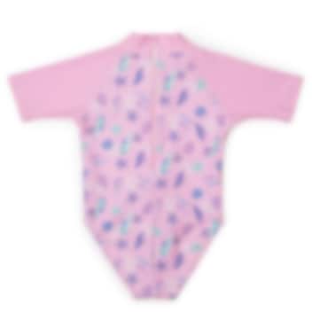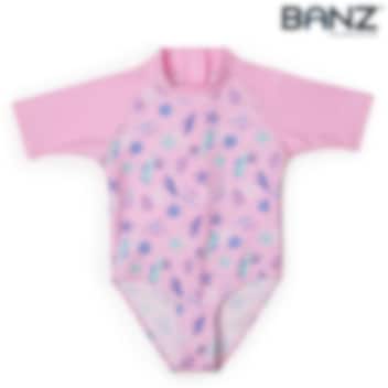 Banz Sealife er en beskyttende og komfortabel UV-badedragt med 3/4 ærmer til børn og babyer i et sødt og funktionelt design. Dragten har certificeret UV-beskyttelse SPF 50+, der beskytter barnet mod solens skadelige stråler. Den er lavet af blødt og fleksibelt materiale, der tørrer hurtigt, og har en indsyet lynlås bagpå, som ikke gnider mod barnets ryg. Det gør dragten nem at tage af og på, også ved bleskift. Materialet er slidstærkt, klor- og farvebestandigt og kan maskinvaskes, hvilket gør dragten ideel til strand- og poolleg.