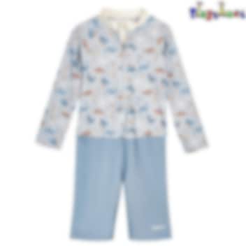 Playshoes Dinos Allover er en beskyttende UV-dragt til børn med høj solbeskyttelsesfaktor, ideel til strand og pool. Dragten har lange ærmer med beskyttende halskrave, lynlås foran og lange ben, der sikrer optimal beskyttelse mod solens skadelige stråler. UV-dragten er fremstillet af behageligt og fleksibelt Oeko-Tex-certificeret materiale, som er hurtigtørrende og komfortabelt – også når dragten er våd. Perfekt til leg og svømning på solrige dage.