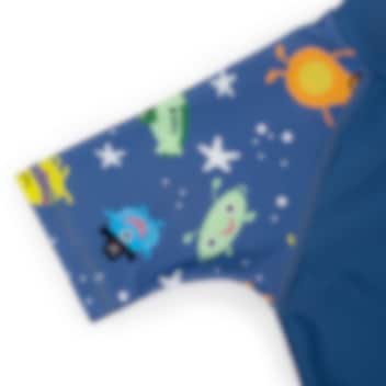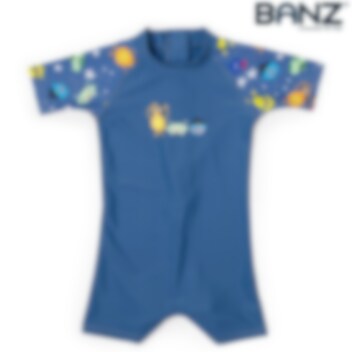 Banz Little Monsters er en beskyttende og komfortabel UV-dragt med 3/4 ærmer til børn og babyer i et sødt og funktionelt design. Dragten har certificeret UV-beskyttelse SPF 50+, der beskytter barnet mod solens skadelige stråler, og er samtidig blød, fleksibel og hurtigtørrende. UV-dragten har en indsyet lynlås bagpå, som ikke gnider mod barnets ryg, og gør det nemt at tage dragten af og på – også ved bleskift. Materialet er slidstærkt, klor- og farvebestandigt og kan maskinvaskes, hvilket gør dragten ideel til leg ved stranden og i poolen.