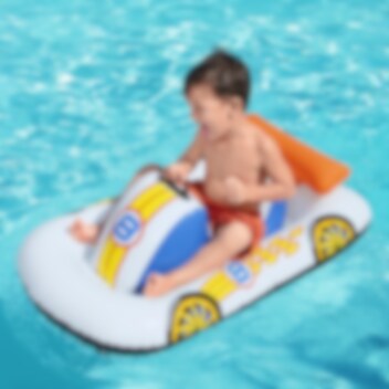 Gummibåd til børn til solrige og glade dage i poolen lavet i flot bildesign. Bestway Sports Car Ride-On gummibåd er 110 x 75 cm stor, har sikkerhedsventiler. Båden er lavet i slidstærkt materiale og er beregnet til børn fra omkring 3 års alderen.