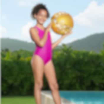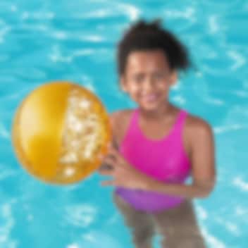 Gør sommerens vandlege ekstra magiske med Bestway Glitter Fusion Gold badebold! Badebolden har en diameter på 41 cm og et flot, stilrent design, der hurtigt bliver et hit hos børnene. Badebolden er fremstillet af slidstærkt vinyl og udstyret med sikkerhedsventil, så legen både er sikker og holdbar. Den er nem at puste op og tage med, hvilket gør den perfekt til sjov på stranden, i poolen eller på badeferien.