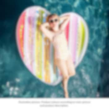 Swim Essentials Purple Heart er en smuk og stabil oppustelig poolmadras formet som et hjerte og i størrelsen 150 x 100 cm. Bademadrassen er fremstillet af stærk, giftfri og slidstærk PVC (0,2 mm) og er sikkerhedstestet efter EU-standard, så børn kan lege trygt i vandet. Med to separate luftkamre og sikkerhedsventiler får du en ekstra sikker og stabil badeoplevelse. Poolmadrassen har en bæreevne på op til 80 kg og er ideel til børn fra seks år og opefter. Perfekt til solferien, stranden eller hyggelige dage derhjemme ved poolen.