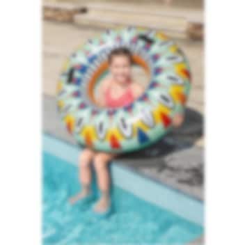Bestway Flirty Fiesta er en farverig og ekstra stor oppustelig badering i XL-format, perfekt til børn, der elsker sjov i vandet. Med en diameter på hele 107 cm giver baderingen masser af plads og komfort – ideel til både poolen og havet, uanset om det er på ferien eller derhjemme. Den er fremstillet i kraftig, testet vinyl, hvilket gør den både robust og holdbar. Med den indbyggede sikkerhedsventil kan du være tryg ved barnets vandleg, og baderingen er naturligvis CE-mærket for høj sikkerhed. Tag den med på stranden, i poolen eller på sommerens udflugter og skab masser af sjove stunder i vandet.