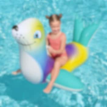 Oplev sjov og leg i vandet med Bestway Sæl XXL, et stort og robust oppusteligt badedyr med flot og stabilt design. Med sine mål på 157 x 114 cm har badedyret masser af plads til børn, der vil plaske, balancere og more sig i poolen eller havet. Badedyret er udstyret med to praktiske håndtag, som gør det nemt for barnet at holde fast, og den brede base sikrer ekstra stabilitet i vandet. Fremstillet af stærk vinyl, er Bestway Sæl XXL modstandsdygtig over for både sol og saltvand, hvilket gør den både holdbar og sikker. Den er CE-mærket, hvilket giver ekstra tryghed under legen.