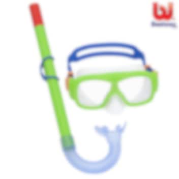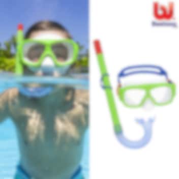 Tag på vandeventyr med Bestway Explora Green snorkelsæt til børn (7 år+). Sættet består af en svømmemaske og snorkel, designet til en god pasform, så børn kan lege sikkert i poolen eller ved havet. Maskens slidstærke linse (Impact-Resistant Lens) beskytter mod klor og saltvand, og materialet er allergivenligt og latexfrit. Den justerbare nakkestrop sikrer, at masken sidder behageligt hele dagen, mens UV-beskyttelsen på linserne beskytter barnets øjne mod solen.