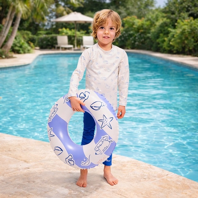 Swim Essentials Blue Surfer er en stilfuld og stabil oppustelig badering til børn, ideel til både poolen og havet. Med en diameter på 55 cm og en kapacitet på op til 50 kg er baderingen egnet til børn fra 3 år og opefter, hvilket gør den perfekt til sikre og sjove svømmeture på ferien eller derhjemme. Baderingen er fremstillet af giftfri og slidstærk PVC, udstyret med sikkerhedsventil og sikkerhedstestet i henhold til EU-standarder, så børnene kan lege trygt i vandet. Det stilfulde design gør baderingen ekstra tiltalende for børnene og giver masser af sommerens sjove vandoplevelser.