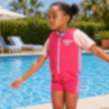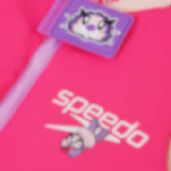 Speedo Float Suit Miami Lilac er en badedragt til børn med længere ærmer og ben samt integrerede skumpuder, som holder barnet flydende og sikrer en korrekt svømmeposition i vandet, mens barnet lærer at svømme. Formålet med denne træningsdragt, der er specielt designet til småbørn, er at vænne barnet til vandet og samtidig lære de første svømmeteknikker. Barnet kan bevæge arme og ben frit, mens det flyder sikkert på vandoverfladen. Badedragten lukkes med lynlås foran og er fremstillet af et blødt materiale, som er behageligt at have på. Den er perfekt at tage med på ferie eller til brug ved svømmeundervisning i hjemmepoolen. Dragten opfylder både australske og europæiske sikkerhedsstandarder.