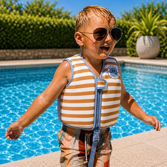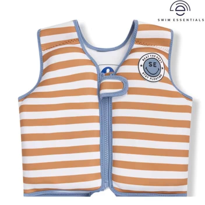 Swim Essentials Brown Stripped svømmevest til børn er et praktisk og trygt flydehjælpemiddel, perfekt til både leg og læring af at svømme for børn mellem 3-6 år (18-30 kg). Vesten er designet til at give barnet fri bevægelse i vandet samtidig med stabil opdrift og korrekt position. Svømmevesten er fremstillet i blødt og behageligt neopren, som sikrer komfort og fleksibilitet, mens barnet leger og lærer at svømme. Inde i brystpanelerne er skum, som giver flydeevne og holder barnet oprejst i vandet. Vesten er nem at tage på og af og lukkes med lynlås og spænde med velcro, så den sidder sikkert på barnet under hele vandaktiviteten.