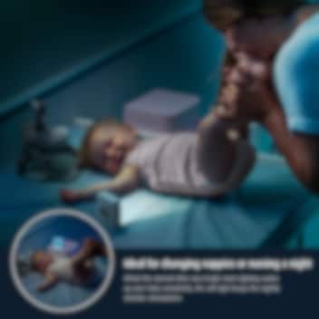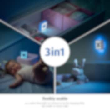 Gør natlige aktiviteter nemmere med Reer Changing Light 3-i-1, en kubeformet natlampe, der skaber tryghed for barnet og hjælper forældrene med at skifte ble, give mad eller håndtere andre opgaver i mørket. Den bløde og behagelige belysning sørger for, at rummet lyses op uden at forstyrre søvnen. Natlampen er batteridrevet og kan bruges på flere måder – den kan monteres på væggen eller placeres på natbord, puslebord eller gulv. Den kombinerer automatisk lyssensor med bevægelsessensor, så lampen tænder, når det bliver mørkt, og reagerer på bevægelse. Lyset slukker automatisk 30 sekunder efter den sidste bevægelse, men kan også indstilles til fast belysning, hvis det ønskes. Den kompakte og diskrete lampe er desuden nem at tage med på rejser eller besøg.