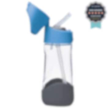 B.box Tritan Drink Bottle Blue Slate er en funktionel og holdbar drikkedunk til børn. Flasken er fremstillet af robust og giftfri Tritan plast, som ikke afgiver smag eller lugt og er helt BPA-fri. Den unikke trekantede og ergonomiske form giver bedst greb i barnets hænder, hvilket gør flasken nem at holde og bruge for børn. Flasken rummer 450 ml og har et låg, der beskytter det aftagelige silikone-sugerør mod snavs og gør flasken lækage- og spildsikker. Låget åbnes nemt af barnet via en solid knap. Flasken har desuden et praktisk bærehåndtag og aftagelig støddæmpning i bunden, hvilket gør den ideel til skole, fritid, udflugter eller rejser. B.box Tritan Drink Bottle er designet med fokus på funktion, holdbarhed og sikkerhed, hvilket gør den perfekt til daglig brug for børn