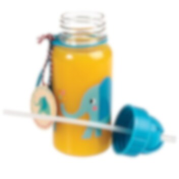 Rex London Elvis The Elephant er en sød og holdbar drikkedunk, perfekt til skole, træning, stranden eller bilferier. Flasken har et silikone-sugerør, som gør det muligt for barnet at drikke med flasken oprejst uden risiko for spild. Når barnet har drukket færdigt, beskytter et tætsluttende låg tuden, så den forbliver ren. Drikkedunken er fremstillet af BPA-fri plast og silikone og har en praktisk bærerem, så den nemt kan hænges på tasken eller bæres i hånden. Flasken rummer 500 ml og er nem at rengøre både flaske og låg med drikketud. Med Rex London Elvis The Elephant får børn en drikkedunk, der både er holdbar, funktionel og fuld af sjovt, børnevenligt design til hverdag, rejser og udflugter.