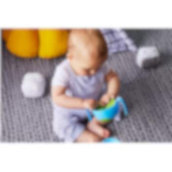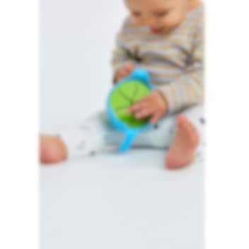 B.box Bowl and Straw Ocean Breeze er en praktisk skål til børn, perfekt til både hjemmebrug og på farten. Skålen har store håndtag, skridsikker bund og et blødt sugerør til børn, så barnet nemt kan drikke suppe, bouillon, grød eller yoghurt uden spild. Den leveres med to låg, hvor det ene er tætlukkende til transport og opbevaring, og det andet har en fleksibel åbning, der gør skålen om til en snackkop. Skålen er fremstillet af BPA-, PVC- og ftalatfrit materiale, kan opvarmes i mikrobølgeovn og rengøres i opvaskemaskine. Denne børneskål kombinerer funktionalitet, sikkerhed og stilrent design og gør det nemt for barnet at spise selv, både hjemme og ude.