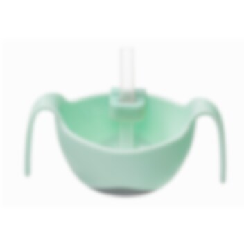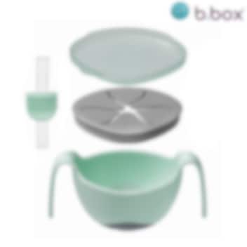B.box Bowl and Straw Pistachio er en praktisk skål til børn, perfekt til både hjemmebrug og på farten. Skålen har store håndtag, skridsikker bund og et blødt sugerør til børn, så barnet nemt kan drikke suppe, bouillon, grød eller yoghurt uden spild. Den leveres med to låg, hvor det ene er tætlukkende til transport og opbevaring, og det andet har en fleksibel åbning, der gør skålen om til en snackkop. Skålen er fremstillet af BPA-, PVC- og ftalatfrit materiale, kan opvarmes i mikrobølgeovn og rengøres i opvaskemaskine. Denne børneskål kombinerer funktionalitet, sikkerhed og stilrent design og gør det nemt for barnet at spise selv, både hjemme og ude.