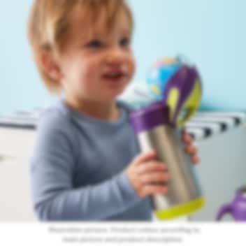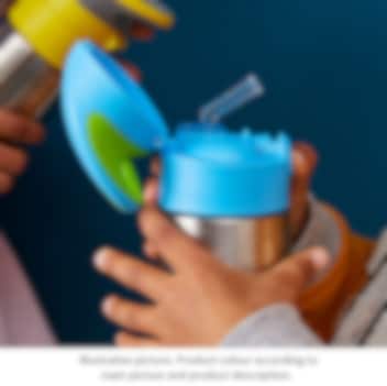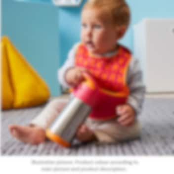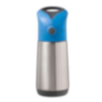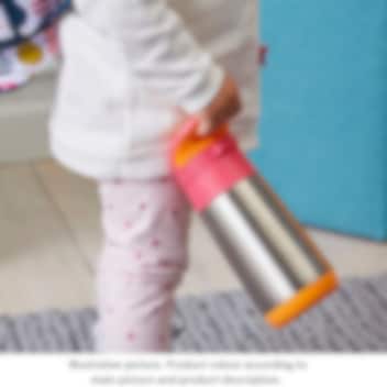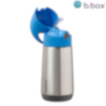 B.box Blue Slate termodrikkedunk er en flot og praktisk termoflaske til børn i rustfrit stål af høj kvalitet, der holder dit barns drik varm i op til 6 timer og kølig i op til 8 timer. Flasken er designet med smarte funktioner, der gør den nem for børn at bruge, både hjemme og på farten. Det store integrerede bærehåndtag gør det let for barnet at bære flasken i hånden eller hænge den på en taske. Låget åbnes med et enkelt klik og forhindrer, at drikken lækker, mens det store silikonesugerør gør det nemt og komfortabelt for barnet at drikke direkte fra flasken. For at opnå det bedste resultat med varme drikke anbefales det at hælde kogende vand i flasken i et par minutter, inden drikken hældes i. Termoflasken er let at rengøre – sugerøret kan tages af, og flasken kan vaskes på opvaskemaskinens øverste rille. Den er fremstillet af BPA-, PVC- og ftalatfrit materiale, hvilket gør den sikker og børnevenlig.