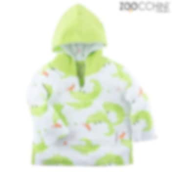 Zoocchini Alligator badeponcho til børn og babyer kombinerer funktionalitet og sødt design. Ponchoen er lavet af blød frotté, som tørrer hurtigt, og har lange ærmer, varme lommer foran og en generøs hætte i blød bomuldsjersey. Den holder barnet varmt efter badet, på stranden eller i badekarret og beskytter samtidig mod solens skadelige UV-stråler (SPF 50+). En praktisk og hyggelig badeponcho, perfekt til badeferie, hjemmestranden eller efter badet i badekarret.