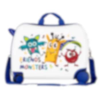 Roll Road Friends Monsters er en stilfuld børnekuffert som kan siddes på, med hårdt låg og på hjul til børn fra omkring 3 år. Kufferten er lavet af slidstærk ABS-plast og den leveres med en stærk skulderpolstret bære- og trækrem, der gør det let at bugsere kufferten eller bære på forældrenes skulder. Inde i kufferten er der tilstrækkelig plads til barnets tøj og legetøj. Kufferten er egnet som håndbagage på de fleste fly og barnet kan køre på den som på en legetøjsbil.