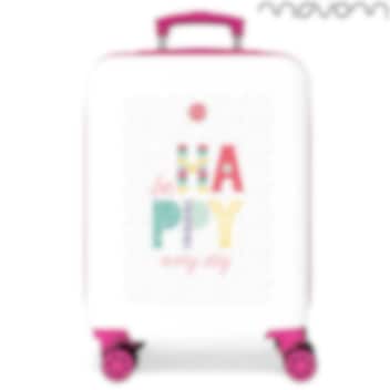 Movom Be Happy White er en stilfuld og holdbar kuffert til børn, der også fungerer perfekt som kabinetaske. Kufferten har 4 lydløse hjul, der drejer 360 grader, hvilket gør tasken nem at manøvrere fx i lufthavne. Det solide 34-liters bagagerum rummer alt, hvad du skal bruge på turen. Kuffertens pakkerum er foret og opdelt i to rum, et rum der lukkes med lynlås og et rum med elastiske stropper. Alt for at holde din taske organiseret. Movom Be Happy White er lavet af slidstærkt ABS plastik og har et stabilt teleskophåndtag, bærehåndtag og kodelås. Kufferten kan også bruges som håndbagage da størrelsen (55 x 38 x 20 cm) passer indenfor IATAs regler for håndbagage (tjek dog hvad der gælder for dit flyselskab).