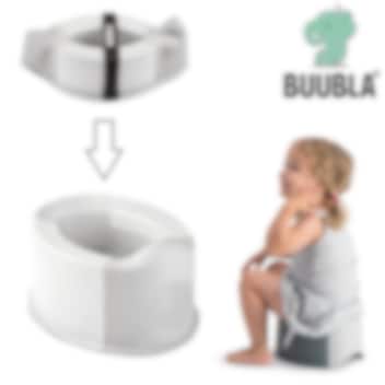 Buubla Potty Chair Snow White er en innovativ, bærbar og let potte, der kan foldes så kompakt, at den er nem at tage med overalt – i byen, på restaurant, på rejse eller på besøg hos venner. Den stabile og robuste potte kan også bruges derhjemme i hverdagen som en almindelig potte. Det særlige ved Buubla Potty Chair er det ultralette materiale (potten vejer kun 370 g) samt den fleksible midterdel af TPE-gummi, som gør det muligt at folde potten sammen, så den fylder minimalt i tasken. Den sammenfoldede potte kan sikres med det medfølgende velcrobånd, så den holdes lukket under transport. Potten er let at rengøre og fremstillet af PVC-, BPA- og ftalatfri materialer. Buubla er et miljøvenligt alternativ, da du hverken behøver engangsposer eller separate potter til hjemmet og rejsen. Som ekstra tilbehør kan der købes en separat vandtæt Buubla-transporttaske med håndtag.