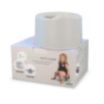 Buubla Potty Chair Vintage Blue er en innovativ, bærbar og let potte, der kan foldes så kompakt, at den er nem at tage med overalt – i byen, på restaurant, på rejse eller på besøg hos venner. Den stabile og robuste potte kan også bruges derhjemme i hverdagen som en almindelig potte. Det særlige ved Buubla Potty Chair er det ultralette materiale (potten vejer kun 370 g) samt den fleksible midterdel af TPE-gummi, som gør det muligt at folde potten sammen, så den fylder minimalt i tasken. Den sammenfoldede potte kan sikres med det medfølgende velcrobånd, så den holdes lukket under transport. Potten er let at rengøre og fremstillet af PVC-, BPA- og ftalatfri materialer. Buubla er et miljøvenligt alternativ, da du hverken behøver engangsposer eller separate potter til hjemmet og rejsen. Som ekstra tilbehør kan der købes en separat vandtæt Buubla-transporttaske med håndtag.