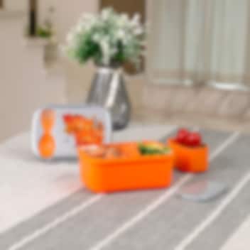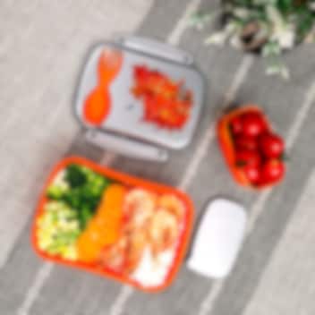 • Hovedkasse og mindre kasse med låg til at holde maden adskilt
