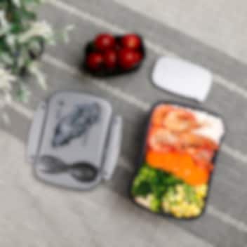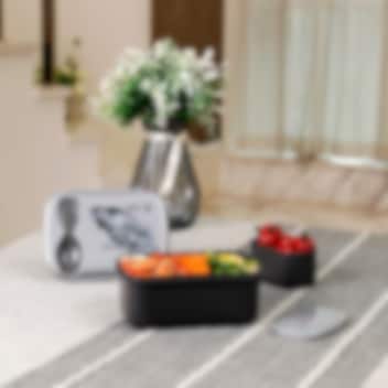 • Hovedkasse og mindre kasse med låg til at holde maden adskilt