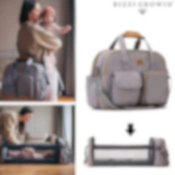 Bizzi Growin POD Windsor Grey er en unik og smart pusletaske, der nemt kan omdannes til en rejseseng til din baby. Perfekt til rejser eller ture ude, når det er tid til, at din baby skal sove. Den integrerede rejseseng foldes hurtigt og let ud på bare få minutter og inkluderer en polstret madras, som også kan bruges som pusleunderlag, samt et finmasket myggenet. Pusletasken kan bæres i bærehåndtag eller over skulderen med den justerbare skulderrem. Bizzi Growin POD Windsor Grey har et rummeligt hovedrum til bleer, vaskeklude, skiftetøj og babymad. Derudover har tasken to mindre lommer foran og flaskelommer på siderne. Produktet er sikkerhedstestet (BS EN 1466:20149), så du trygt kan lade dit barn sove i det.