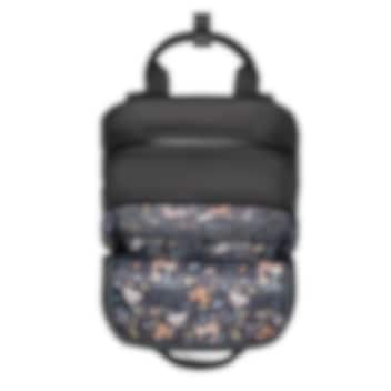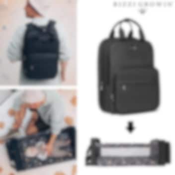 Bizzi Growin RucPOD Windsor Black er en unik og smart pusletaske, der nemt kan omdannes til en rejseseng til din baby. Perfekt til rejser eller ture ude, når det er tid til, at din lille skal sove. Den integrerede rejseseng foldes let ud på få minutter og leveres med en polstret madras, som også fungerer som pusleunderlag, samt et finmasket myggenet. Pusletasken kan bæres som rygsæk med justerbare og polstrede skulderstropper eller hænges på klapvognen ved hjælp af medfølgende fastgørelsesstropper. Bizzi Growin RucPOD Black har et rummeligt hovedrum med to netlommer, der giver plads til bleer, vaskeklude, skiftetøj og babymad. Derudover har tasken to praktiske rum på fronten. Produktet er sikkerhedstestet (BS EN 1466:20149), så du trygt kan lade dit barn sove i det.