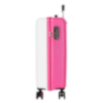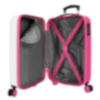 Roll Road Little Me Unicorn børnekuffert er en flot, funktionel og stabil kuffert lavet af slidstærkt formstøbt plast (ABS) med teleskophåndtag, kodelås og fire hjul. Hjulene kan drejes 360 grader, hvilket giver maksimal manøvredygtighed, når tasken skal flyttes, fx mellem porte i lufthavnen. Kufferten har 32 liters pakkeplads og har en foret inderside med den ene side med elastiske stropper og den ene side, der lukkes med lynlås, så tingene er organiseret under turen. Kuffertens mål (55 x 34 x 20 cm) falder inden for IATAs anbefalede mål for håndbagage (tjek med dit flyselskab, hvad der gælder for dem).