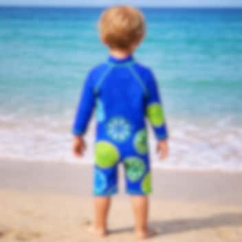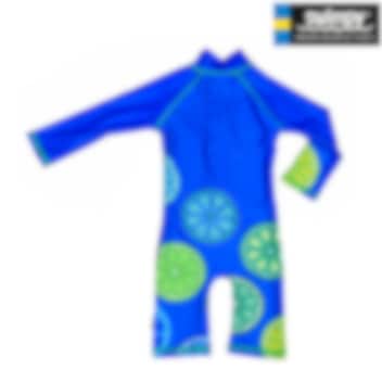 Swimpy Blue Lemon er en flot og praktisk UV-dragt til små børn og babyer, der beskytter barnet mod solens skadelige UV-stråler på stranden og ved poolen. Dragten er lavet af blødt, hurtigtørrende materiale med SPF 50+, så barnet kan lege komfortabelt og sikkert i solen. UV-dragten er nem at tage på og af med en lynlås bagpå, og materialet er behageligt, selv når det er vådt, hvilket gør den ideel til svømning og strandliv, både på ferie og derhjemme.