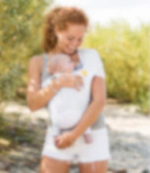 Minimonkey Mini Baby Sling Hvid er en ergonomisk strækvikle, der fungerer som en let bæresele til børn og babyer. Den kombinerer komfort, praktisk anvendelighed og lav vægt, og med kun 175 gram fylder den minimalt. Den passer let i håndtasken, bletasken, dagtasken eller som håndbagage, hvilket gør den perfekt til både hverdag og rejser. Strækviklen er lavet af slidstærkt, tyndt polyester-net, som er åndbart og kan bruges i våde miljøer – f.eks. i brusebadet, poolen eller på stranden. Den universelle one-size-størrelse gør, at den passer til både nyfødte og småbørn, og løkken bæres komfortabelt over den ene skulder. Med Minimonkey Mini Baby Sling kan du bære din baby ergonomisk i den anbefalede "M"-stilling (frøposition), hvilket er behageligt for både barnet og den voksne.