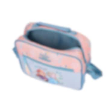 Frost Believe in the Journey er en lille, flot og praktisk håndtaske, designet til børn. Tasken har plads til barnets tegnebog, kam, legetøj, telefon og andre småting, som barnet gerne vil have med på farten. Den justerbare skulderrem gør det muligt at bære tasken på skulderen, i hånden eller på tværs over brystet, så barnet kan vælge den mest komfortable måde at have sin taske på. Håndtasken har et hovedrum med lynlås og en lille lomme foran til nem opbevaring af småting.